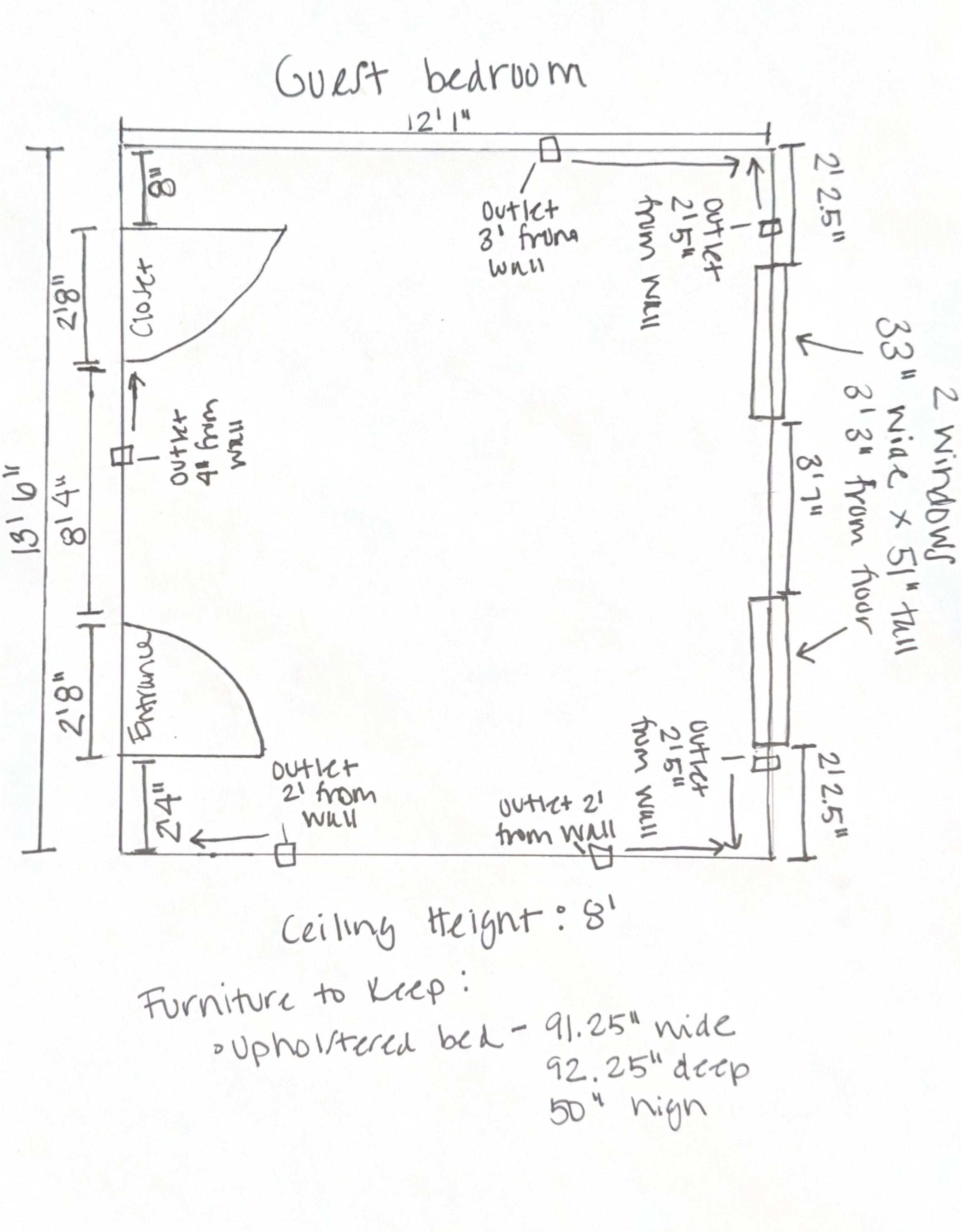 ✔ Existing furniture dimensions (if keeping any)